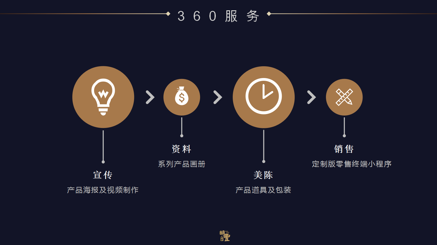 为客户提供产品配套的道具、包装、微信推广、灯片、H5一系列的增值服务