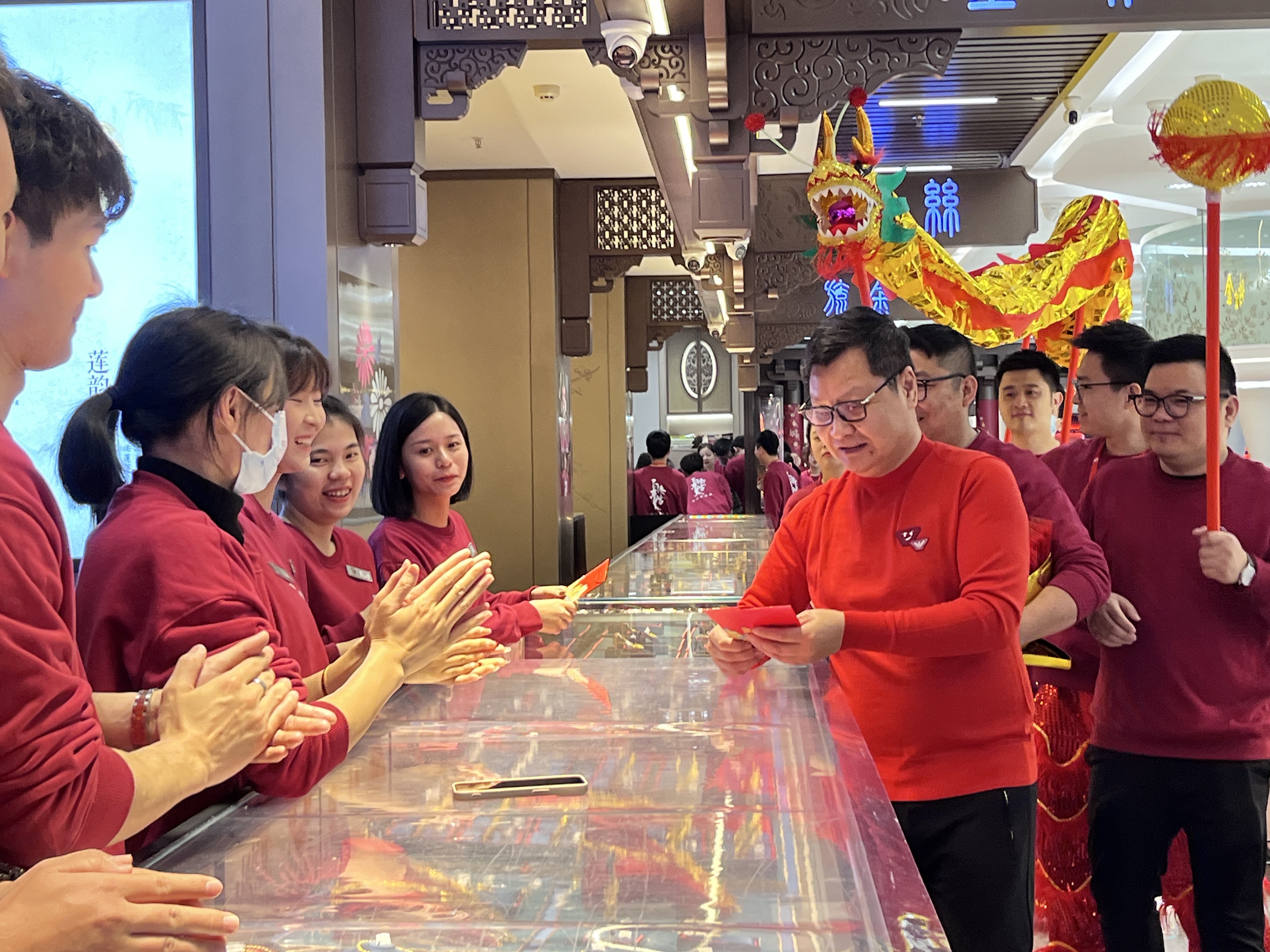 共同迎接2024龙年的第一个工作日。